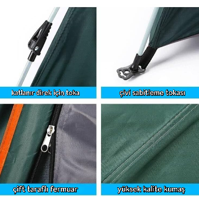 2-3 Kişilik Otomatik Açılan 200x140x150 Cm Çadır Yeşil