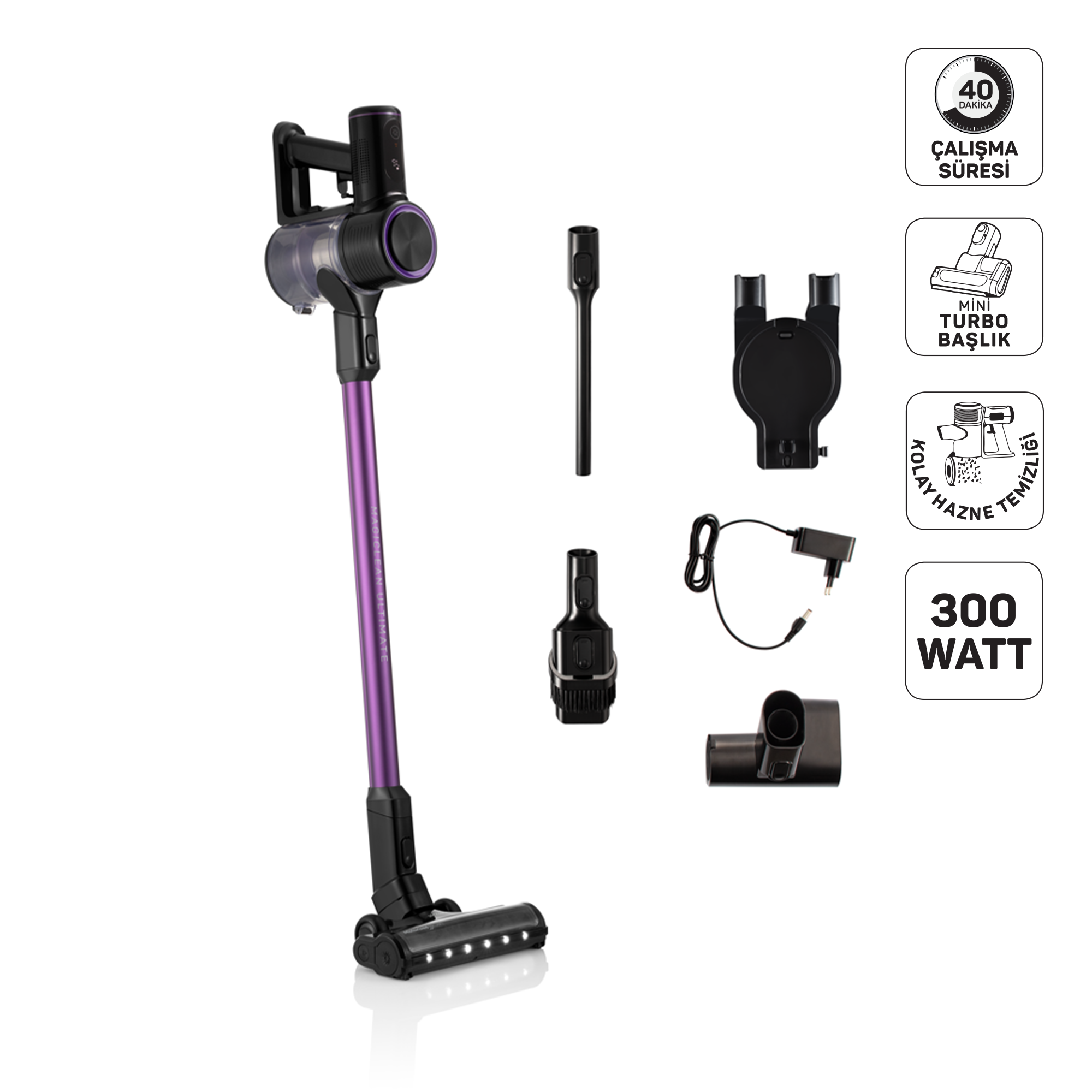Güçlü 300W BLDC motoru, 40 dakikaya kadar kesintisiz çalışma süresi ve HEPA H10 filtresi ile evinizde derinlemesine ve hijyenik temizlik sağlayın. Geniş aksesuar seçenekleri sayesinde her köşeye kolayca ulaşarak temizliği zahmetsizce bitirin.