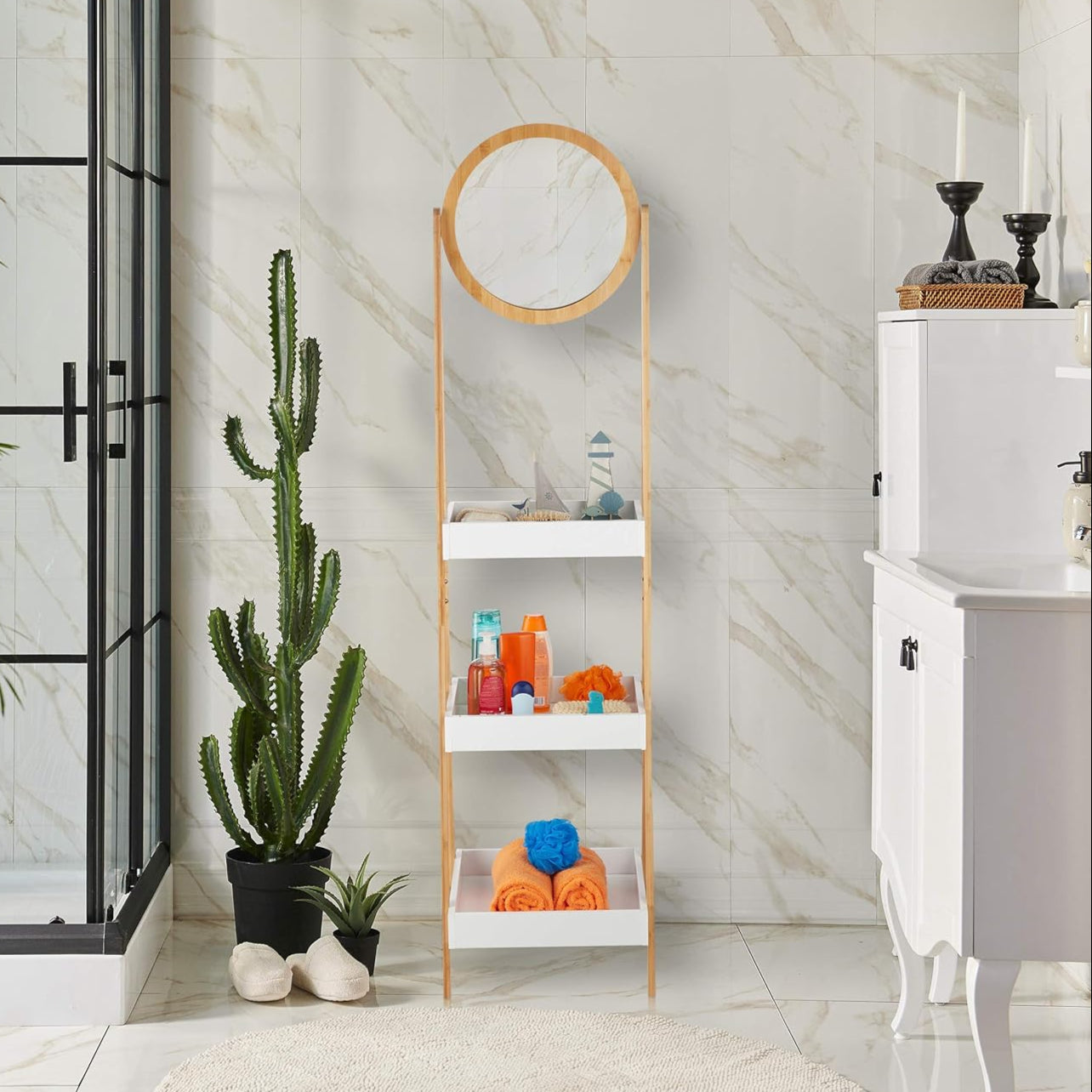 Aynalı 3 Katlı Çok Amaçlı Düzenleyici 160x40 Cm Bambu Raf