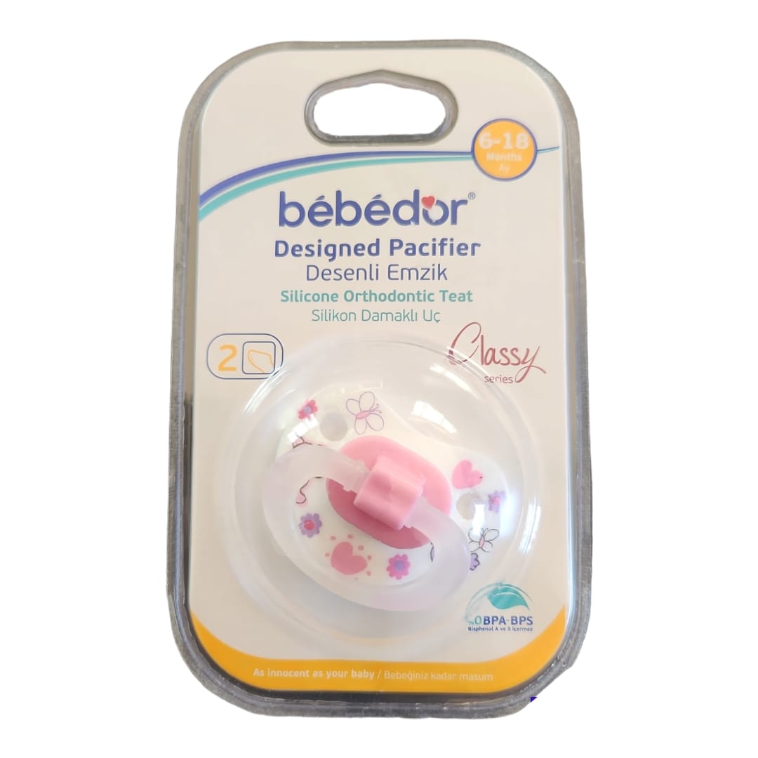 Bebedor Desenli Emzik Silikon Damaklı Uç 6-18 Ay Pembe