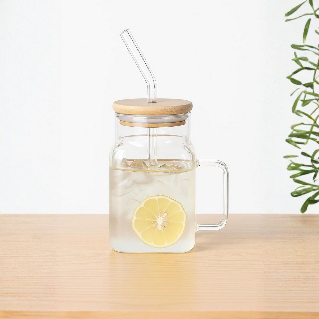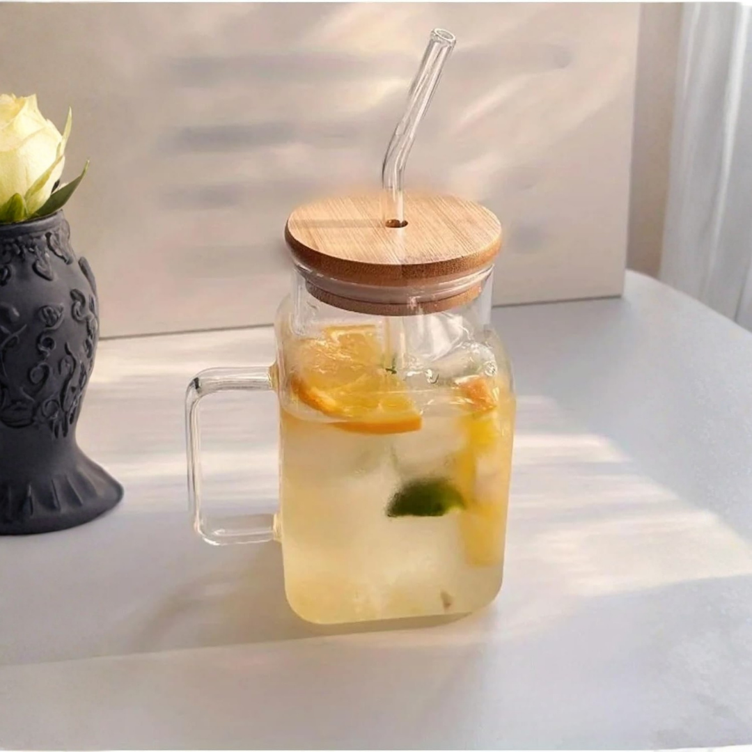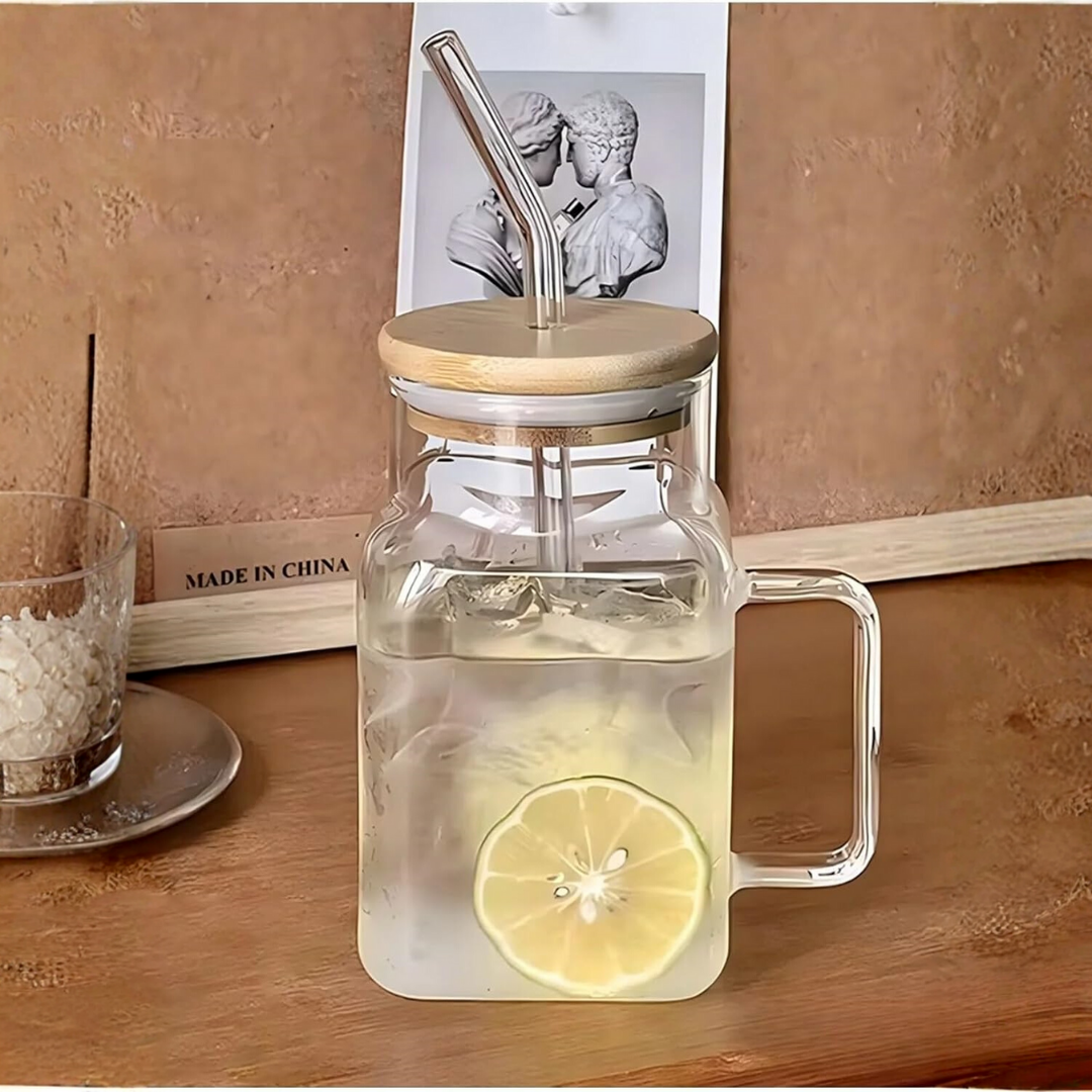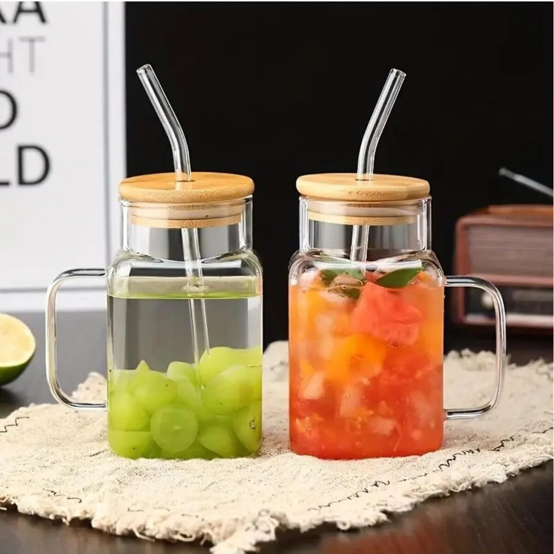 Borosilkat Cam Bambu Kapaklı Pipetli Bardak