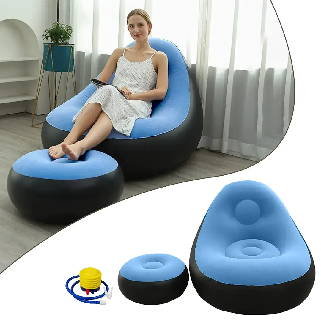Dahili Pompalı Tabureli Yuvarlak Şişme Koltuk Mavi