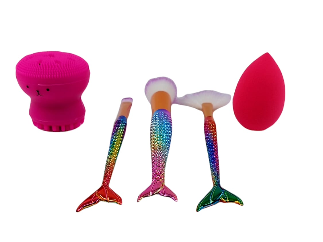 Denizkızı Makyaj Fırça Seti ve Temizleme Fırçası Fuşya