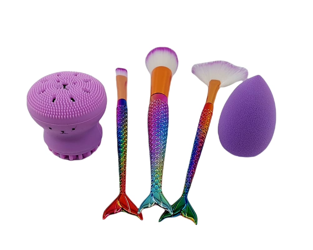 Denizkızı Makyaj Fırça Seti ve Temizleme Fırçası Mor