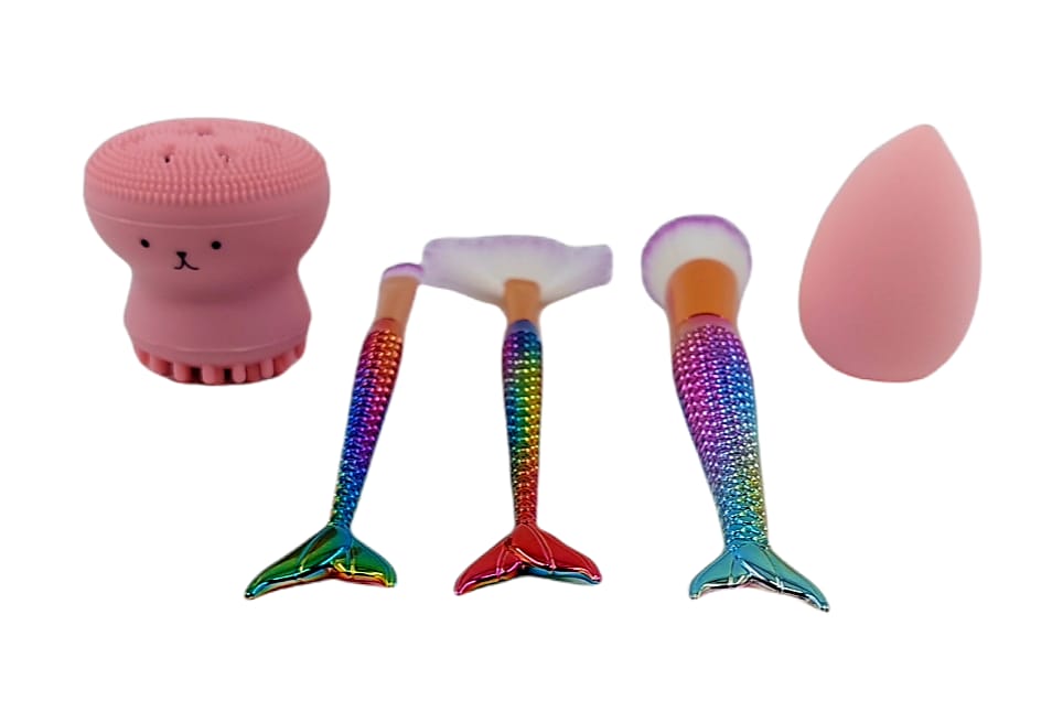 Denizkızı Makyaj Fırça Seti ve Temizleme Fırçası Pembe