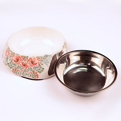 Desenli Kaymaz Çelik Pet Mama Kabı