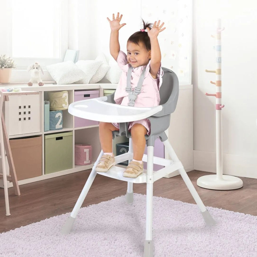 Dolu Emniyet Kemerli Mama Sandalyesi Gri Beyaz