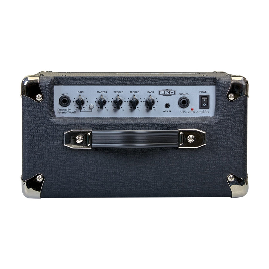 EKO V 15, Marche'deki markanın geçmişini Roberto Tittarelli'nin teknik dehasıyla bir araya getirerek 2 seçilebilir anahtarlı kanallı 15W amfi yaratan küçük bir kombo gitar amfisidir. 6,5" hoparlör, hassasiyet ve büyük çok yönlülük, evde çalmak, küçük doğaçlama sıkışmalar ve küçük alanlarda provalar için uygun olan bu küçük mücevherin güçlü yönleridir. Hepsi çok iyi bir kalite-fiyat oranına sahip kompakt bir kabinde.