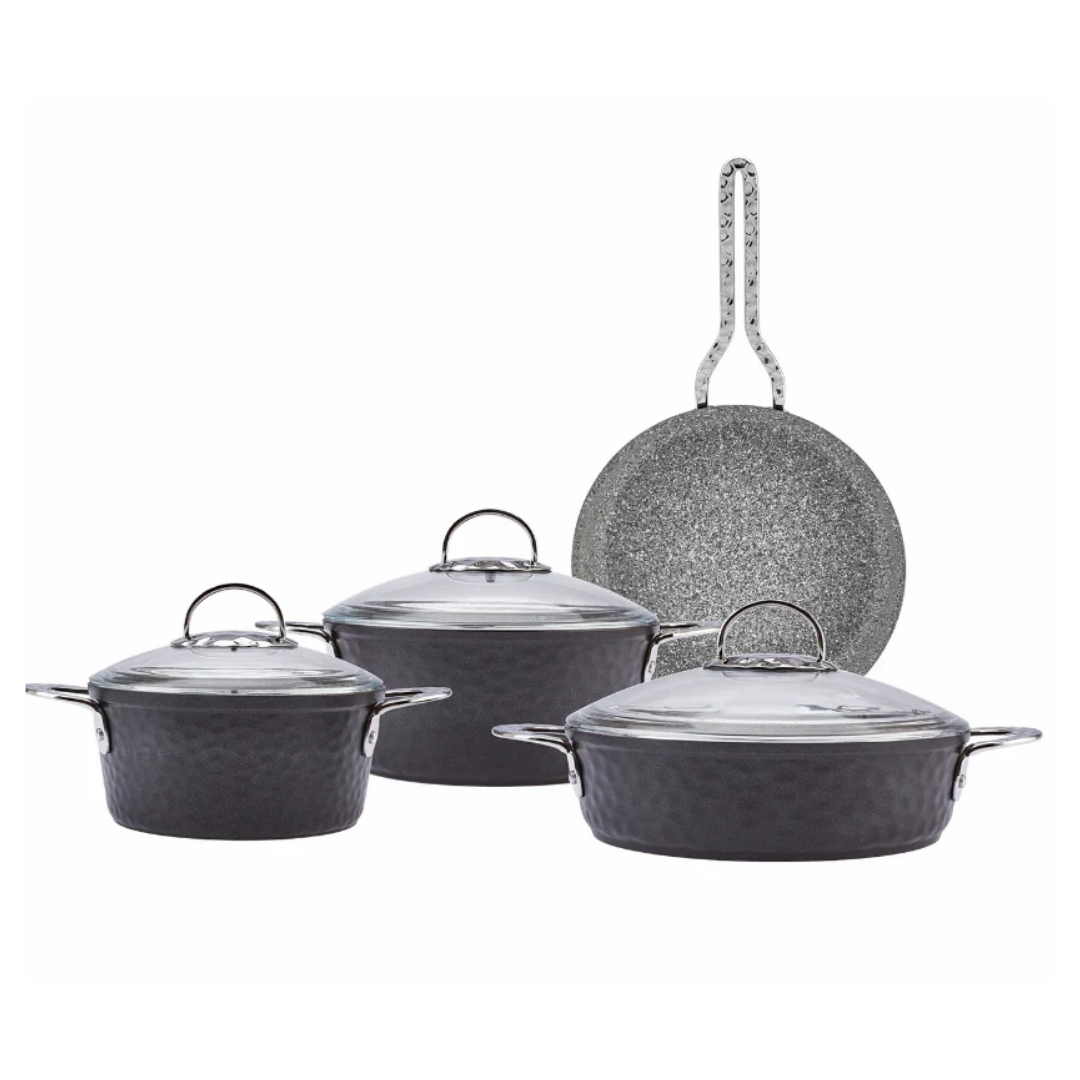Emsan Nostalji İndüksiyon Tabanlı 7 Parça Granit Tencere Seti Siyah