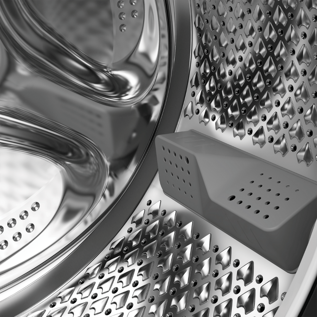 Paslanmaz Çelik Tambur’a sahip Grundig çamaşır makinesi, özel tambur tasarımıyla çamaşırlarınızın yıpranmasını engelliyor. Tamamen geri dönüştürülebilir, doğa dostu bu tambur, çeliğin özel bir yöntemle preslenmesi sonucu ortaya çıkan güçlendirilmiş malzemeden üretiliyor. Böylece daha uzun ömürlü, darbe ve sarsıntılara dayanıklı, çatlama ya da kırılma gibi problemlerden uzak bir tambur elde ediliyor.