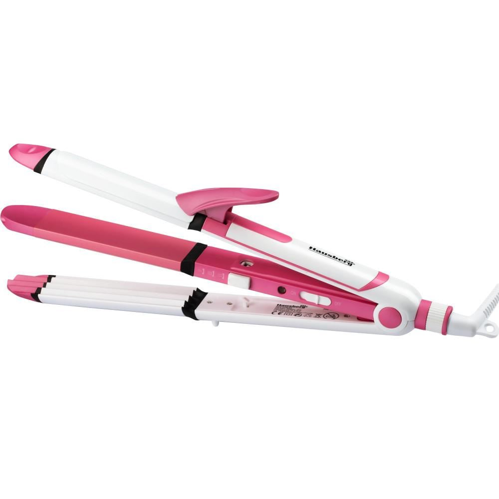 Saç düzleştirici 3'ü 1 arada, bukle, kıvırma ve düzleştirme için, Hausberg HB-31RZ, Hızlı ısınma, PEMBE