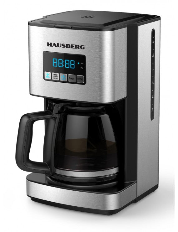 Makine, kolay kaldırma için bir ön mandalın yanı sıra üstten yüklemeli bir su deposu ve bir sepet içeren siyah ABS plastik bir kapakla donatılmıştır. İçeride, HAUSBERG Wifi kahve makinesini daha çevre dostu hale getiren, bulaşık makinesinde yıkanabilen, yeniden kullanılabilen, çevre dostu, koni şeklinde bir filtre bulacaksınız.