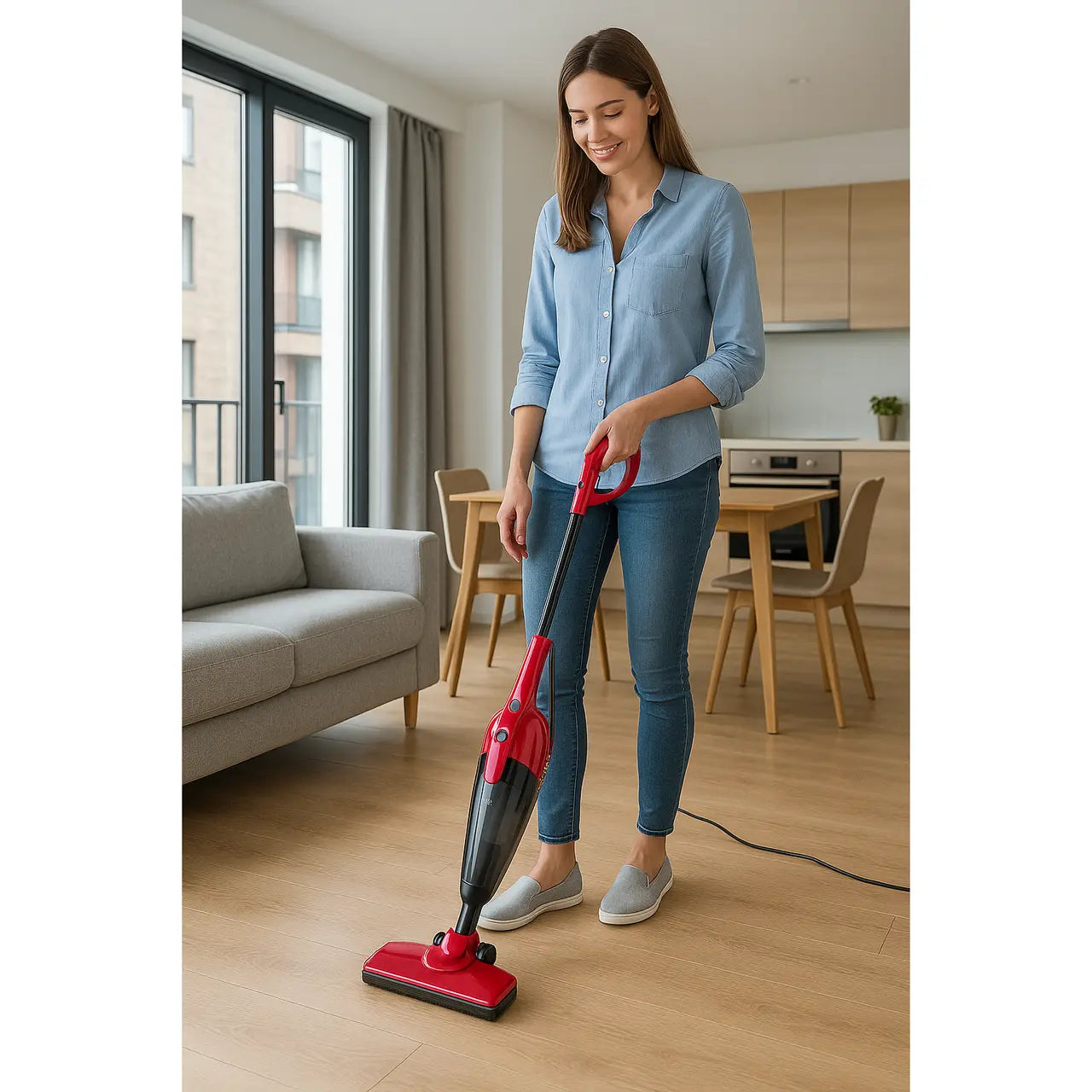 Hausberg dikey elektrikli süpürge HB-2025RS, torbasız, kuru emiş, Hepa filtre, 0,5 l, 600-800 W, kırmızı-beyaz avantajları: