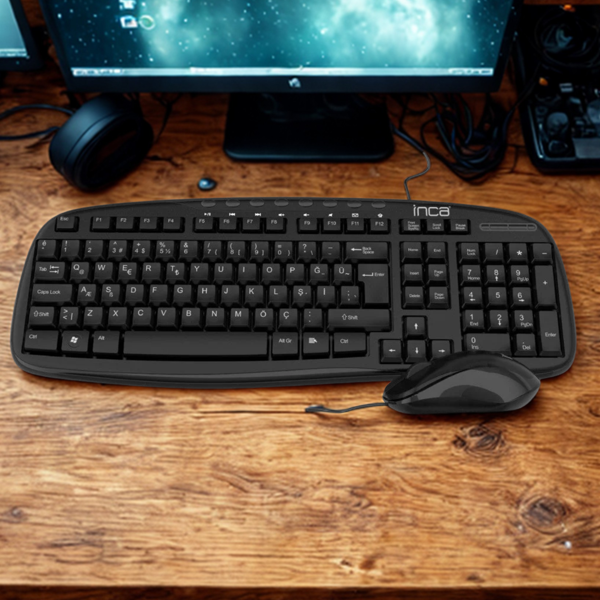 Kompakt Tasarım Ve İnce Profil Bu masaüstü set gereksinim duyduğunuz özelliklerin tümünü bir araya getirerek sizlere sunuyor. INCA IMK- 384U Q Türkçe Silinmez Tuş Multimedia Klavyesi masa üstünüzde şık bir görünümün sunarken ,yumuşak tuş teknolojisiyle özel olarak üretilen aynı boyut - aralıklara sahiptir. Klavyenizin yanında yüksek tanımlı optik izleme (1000 dpi) özelliğine sahip Mouse size kusursuz bir denetimin keyfini yaşatacak.