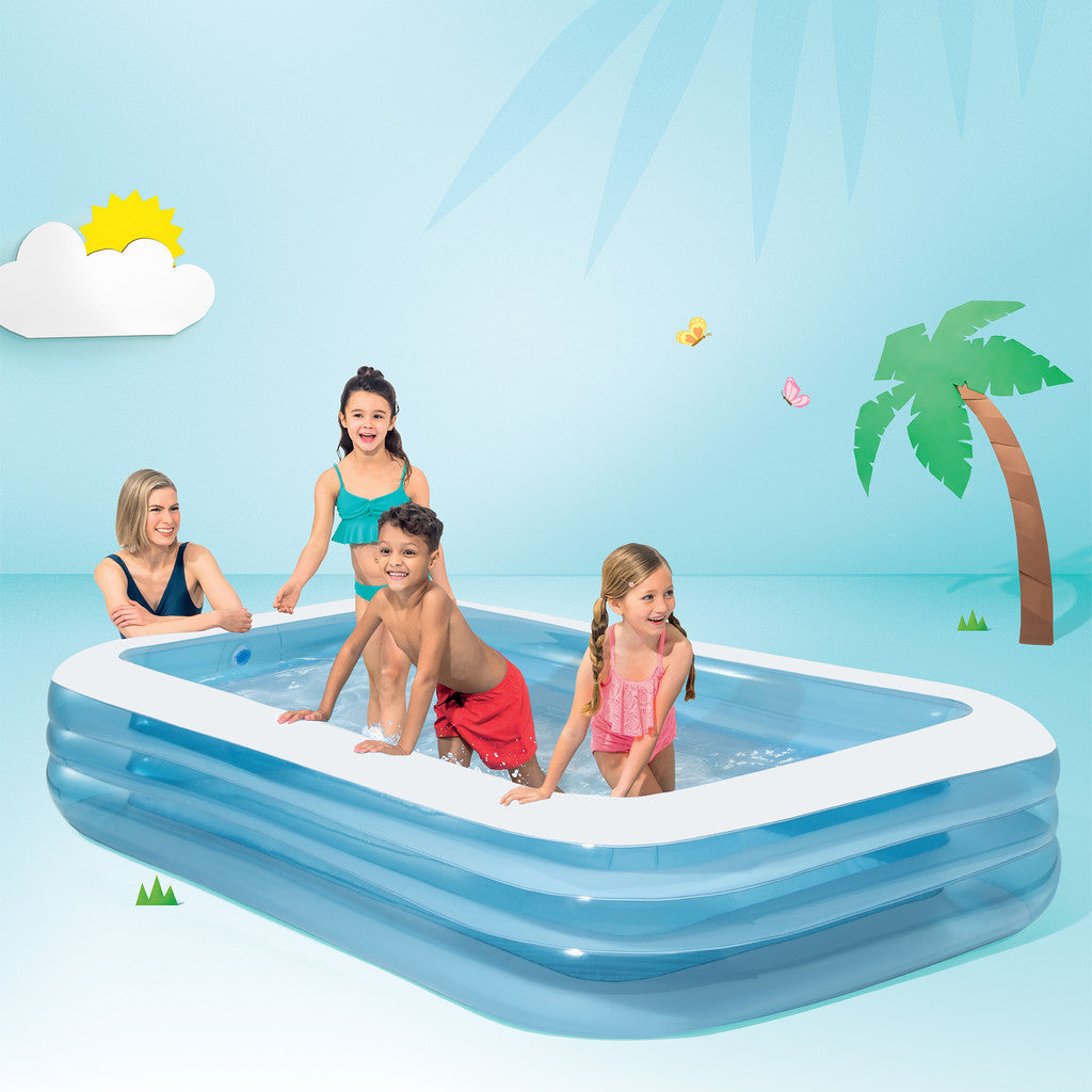 Bu yaz Intex Swim Center™ Aile Havuzu ile dalga yaratın! Geniş yan duvarlar maksimum oyun alanı sağlar ve her biri kombo valfli üç hava odası şişirme ve söndürmeyi kolaylaştırır. Aileniz ve arkadaşlarınız tüm yaz boyunca serin kalabilir ve bu eğlenceli havuzun tadını çıkarabilir!