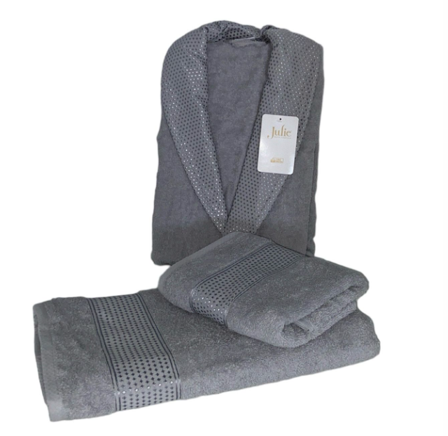 Julie Darla 3 Parça Tekli Bornoz Seti Gri