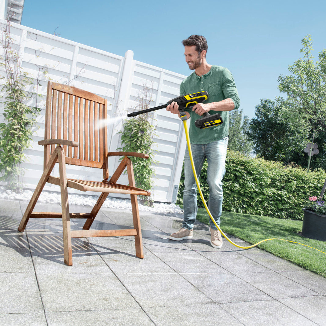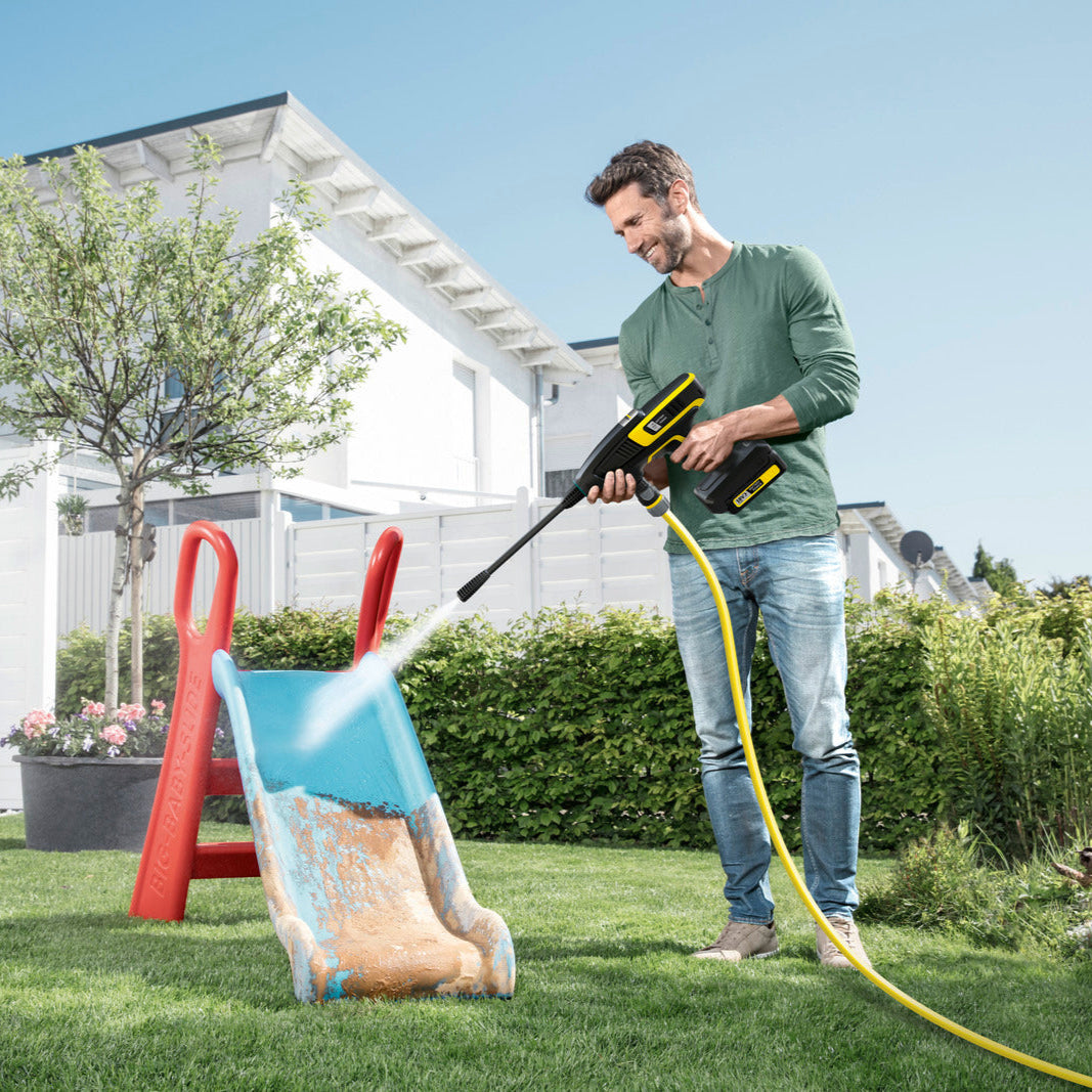 Elektrik bağlantısı yok mu? Sorun değil! Kärcher 18 V Pil platformundan KHB 6 Pil hafif, elde taşınabilir, pille çalışan orta basınçlı yıkama makinesi, güç kaynağına ihtiyaç duymadan evin etrafındaki neredeyse her şeyi temizler. Sadece hortumu bağlayın ve kullanıma hazır. Nazik düz jet nozulu ile inatçı kirler bahçe mobilyalarından, oyuncaklardan ve çok daha fazlasından hızlıca çıkarılabilir. Saksılarınız polen ve toprakla mı lekelendi? Bu, inatçı kirleri bile zahmetsizce temizlemek için kullanılabilen verimli döner nozulun işidir. Her iki nozul, değiştirilebilir pil ve pil şarj cihazı teslimat kapsamına dahildir. Değiştirilebilir pil, 18 V Kärcher Pil Gücü platformundaki tüm pille çalışan cihazlarda kullanılabilir. Yenilikçi Gerçek Zamanlı Teknoloji sayesinde, pilin LCD ekranı çalışma, şarj ve saklama sırasında kalan kapasiteyi gösterir. Geniş aksesuar yelpazesi KHB 6 Pil'i daha da çok yönlü hale getirir. Örneğin, alternatif kaynaklardan su kullanmak için bir köpük jeti, yıkama fırçası ve emiş hortumu da mevcuttur.