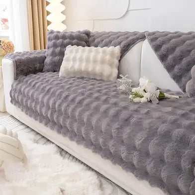 Koyu Gri Tavşan Tüyü Kaymaz Kanepe Kılıfı