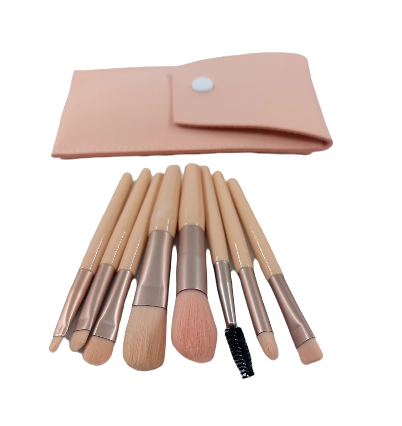 Küçük Boy Deri Cüzdanlı Yüsek Kalite Çoklu Fırça Seti Pembe