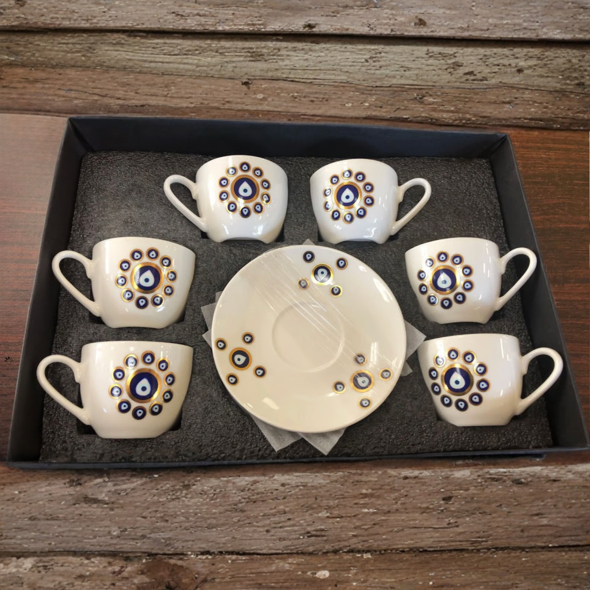 Set, zarif bir desenle süslenmiş altı fincan ve uyumlu tabaktan oluşuyor. Yüksek kaliteli kemik çini, çayınızı daha uzun süre sıcak tutarak genel deneyiminizi zenginleştiriyor.