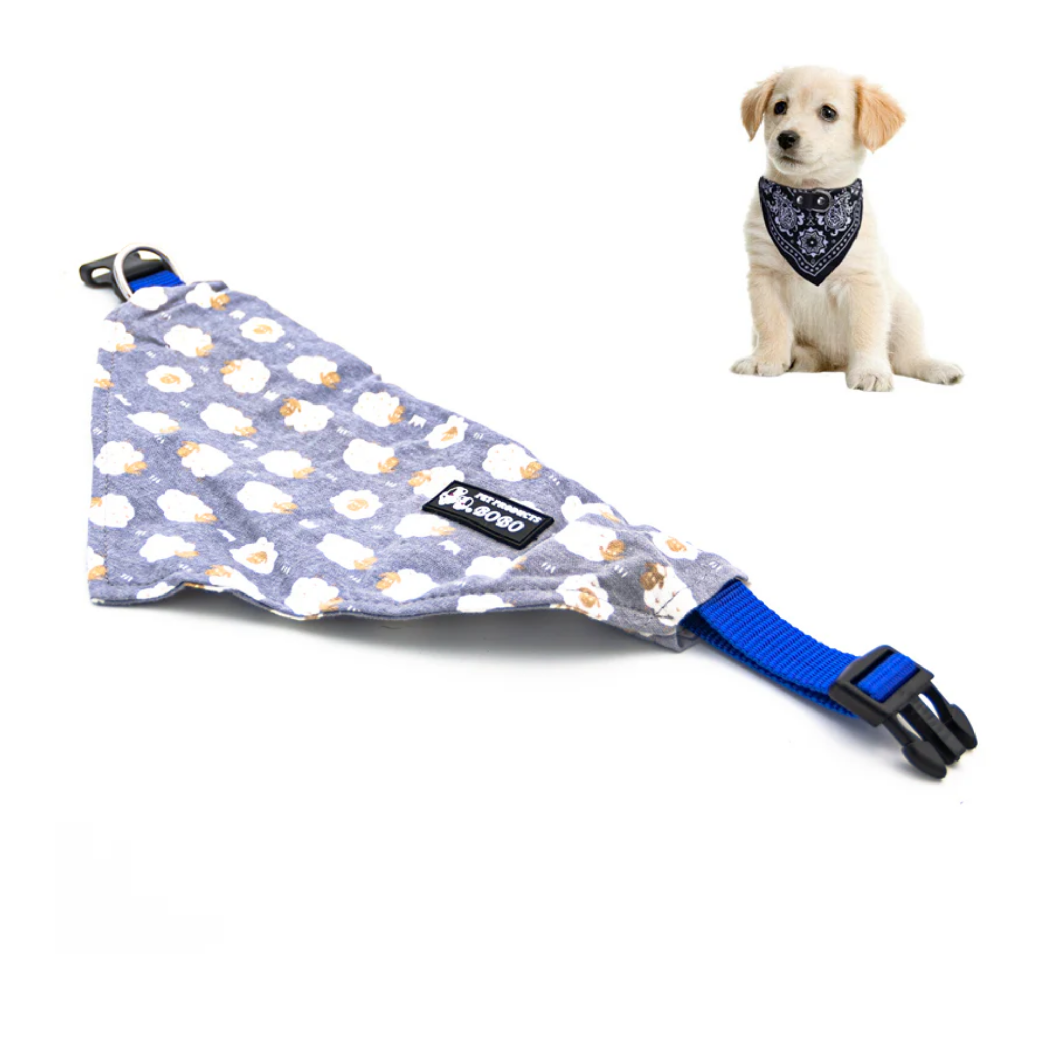Kuzu Desenli Fular Köpek Tasması Mavi
