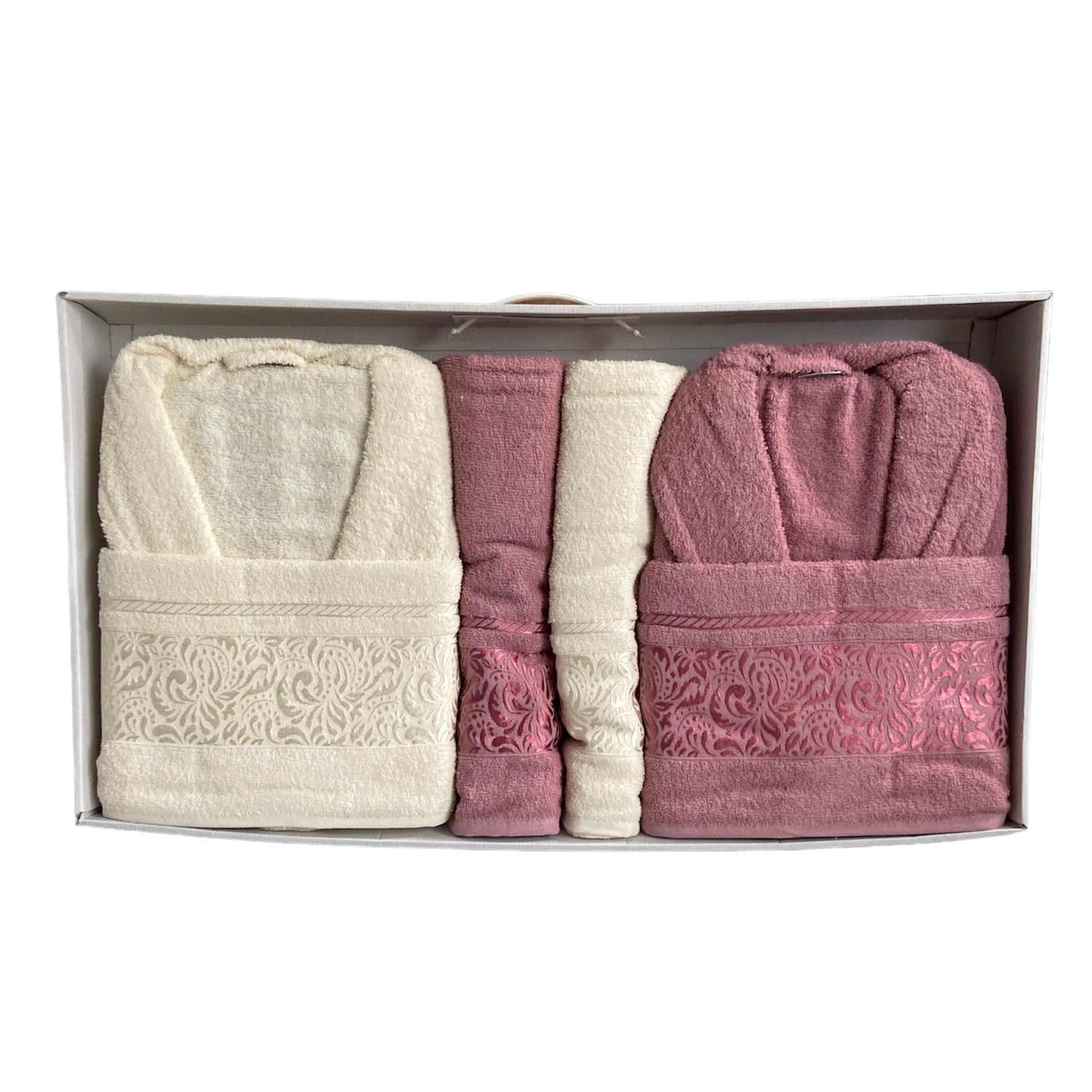 Lena Mila 6 Parça Aile Banyo Bornoz Seti Gül Kurusu Beyaz