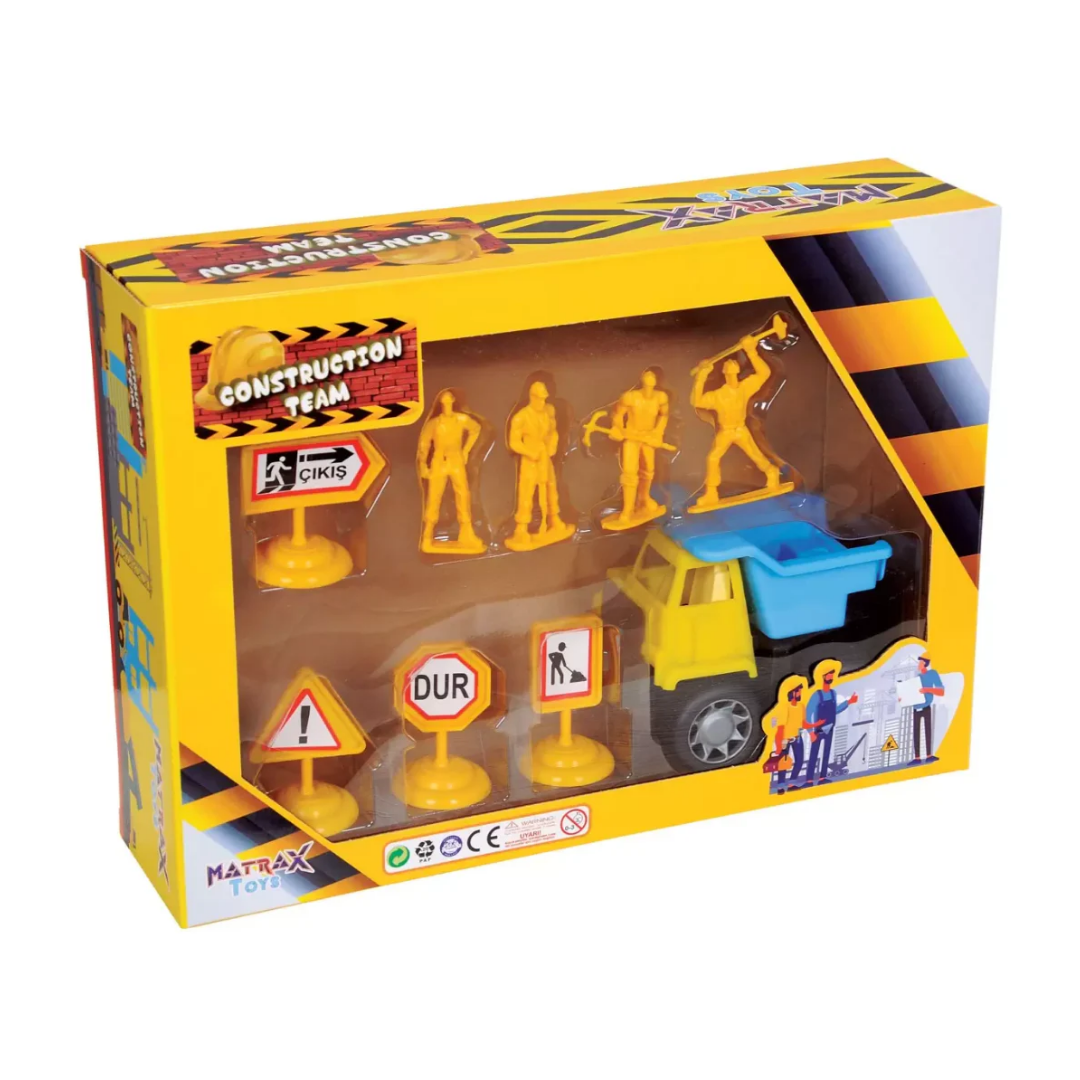 “Yol Çalışma Seti” oyuncak seti, 4 adet adam figürü, 1 adet araba ve 4 adet duba içermektedir.