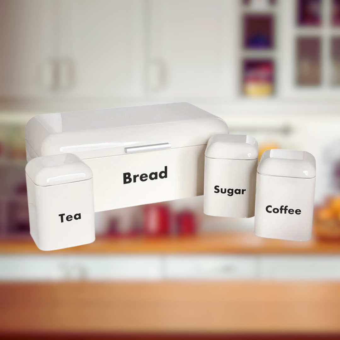 Metal Ekmeklik ve Kahvelik Şekerlik Seti Beyaz Siyah