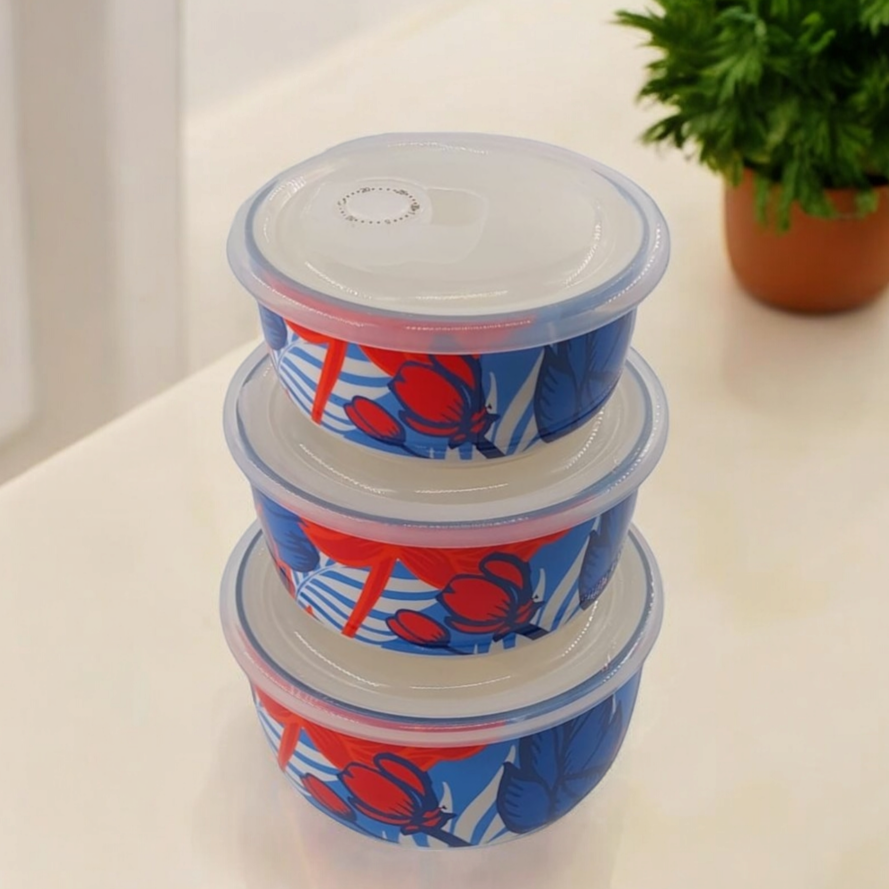 Mikrodalgaya Girebilen Seramik 3'lü Saklama Kabı