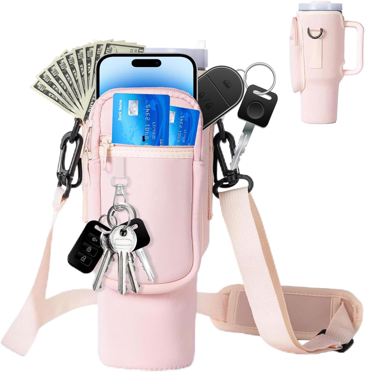 Omuz Askılı Telefon Tutuculu Stanley Termos Çantası Pembe