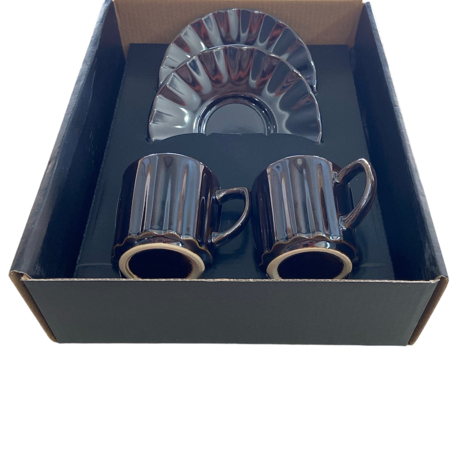 Porzellan 4 Parça Kahve Fincan Seti Antrasit