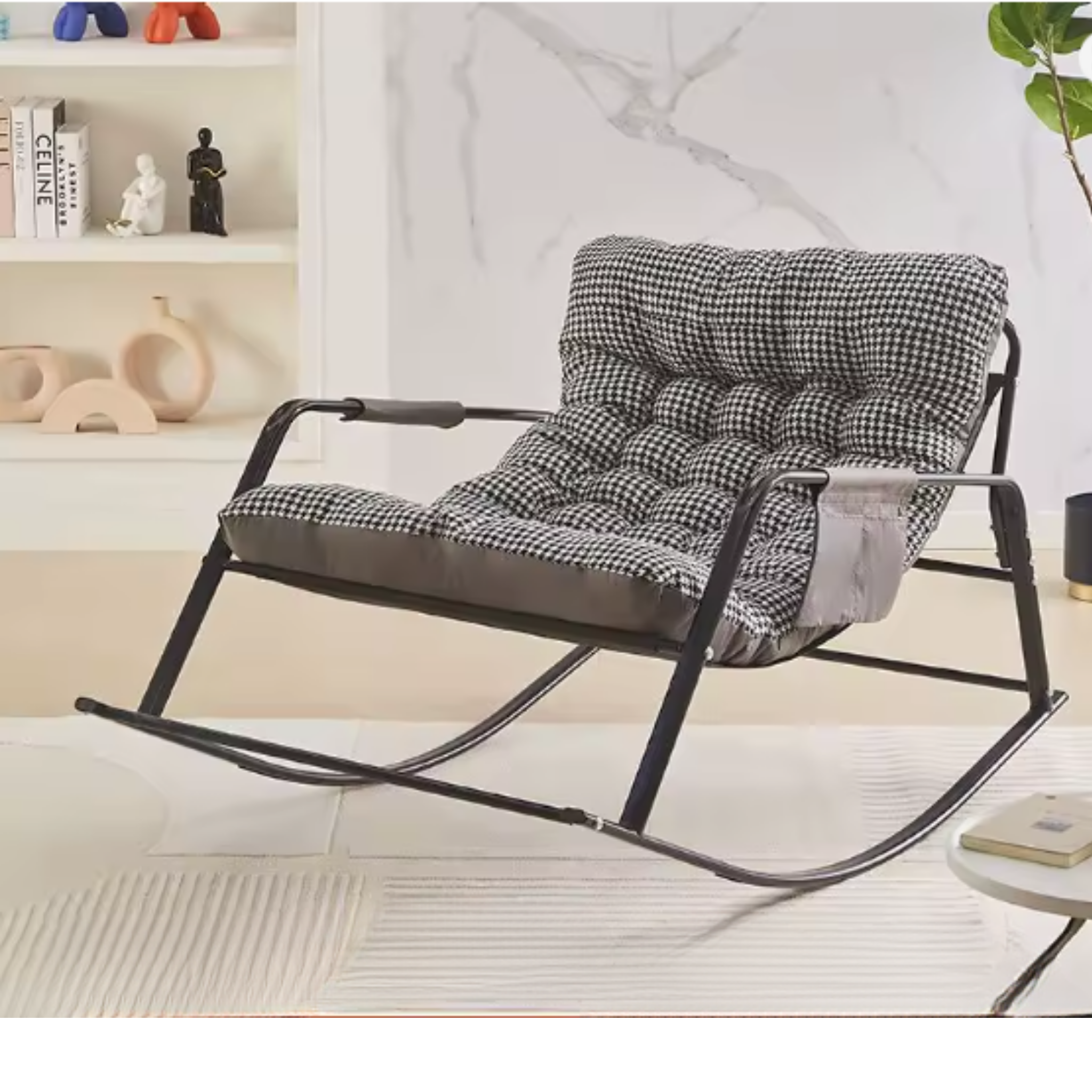 Sallanan Metal İskeletli Teslin Kumaşlı Konforlu Sandalye Koltuk Siyah Beyaz