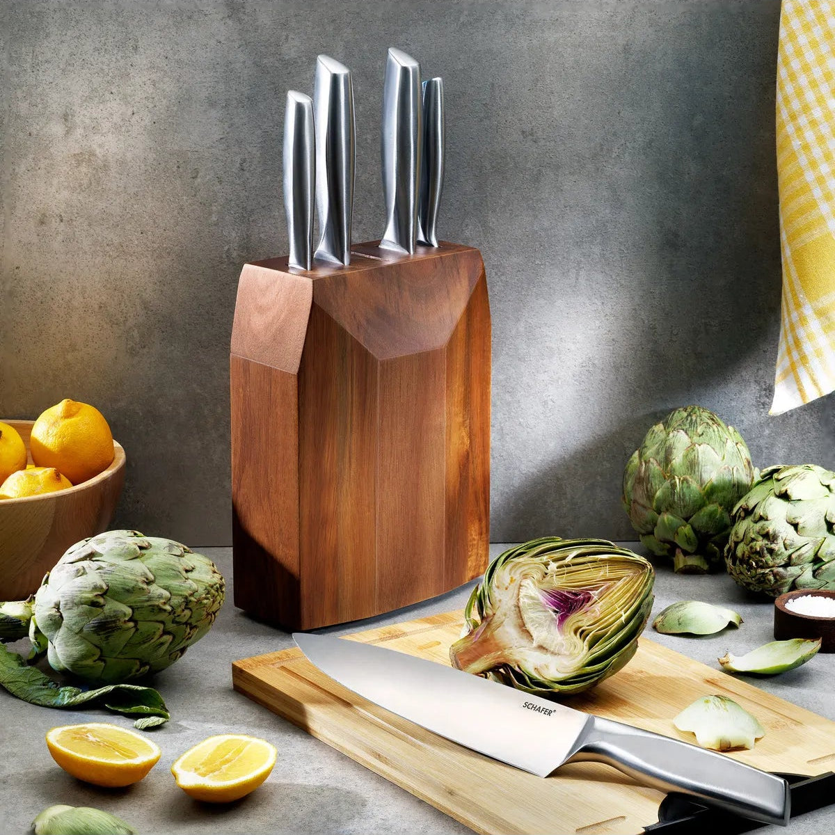 Ahşap Ürün İçerik Bilgisi: 1 Adet Şef Bıçağı: 32 cm 1 Adet Ekmek Bıçağı: 32 cm 1 Adet Dilimleme Bıçağı: 32 cm 1 Adet Çok Amaçlı Bıçak: 23 cm 1 Adet Soyma Bıçağı : 20 cm 304 kalite paslanmaz çeliktir