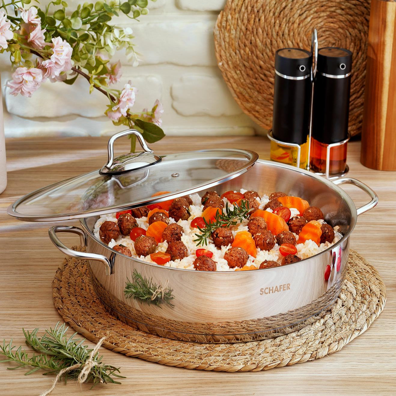 Schafer Held 30 Cm 2 Parça Inox Çelik Basık Tencere -18/10 Krom Nikel paslanmaz çelik -Tüm ocak tiplerinde kullanılabilir -Cam kapak ve metal kulplar -Kapsül taban ile ısı ve enerji tasaruffu sağlar -Bulaşık makinesinde yıkanabilir. |