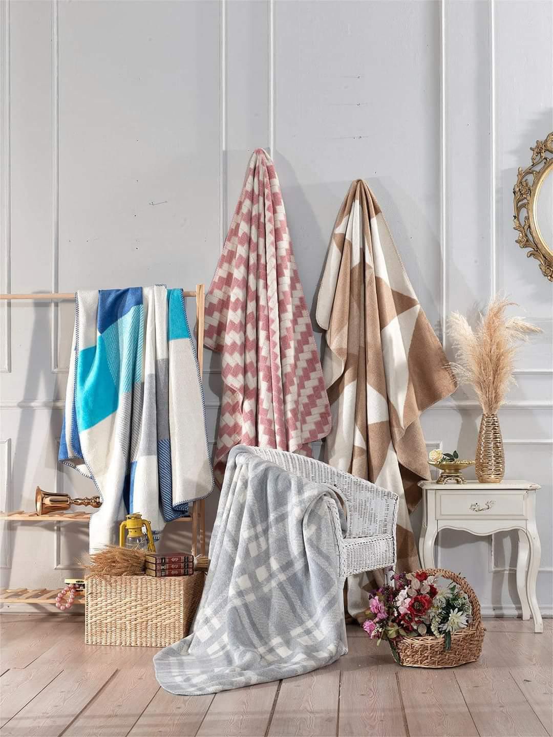 Scotch Tek Kişilik 160x200 Cm Pamuklu Battaniye Gri Krem