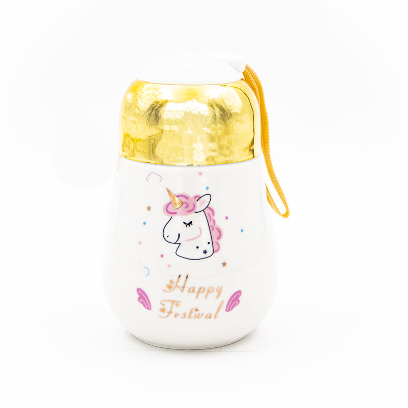 Seramik Happy Festival Yazılı Desenli Gold Kapaklı Termos Bardak