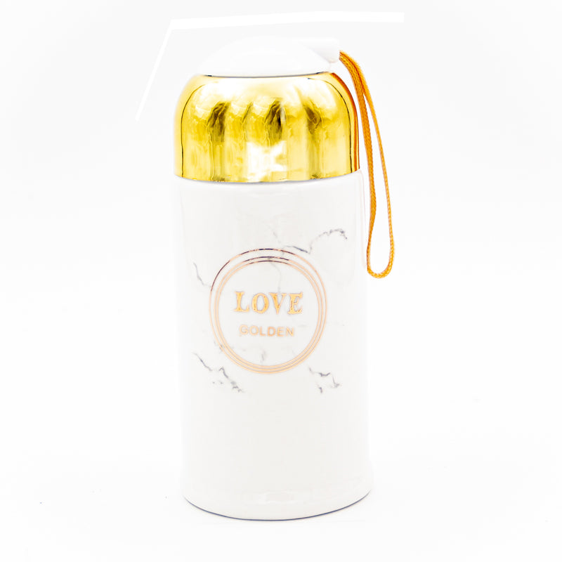 Seramik Yazılı Yuvarlak Gold Kapaklı Termos Bardak