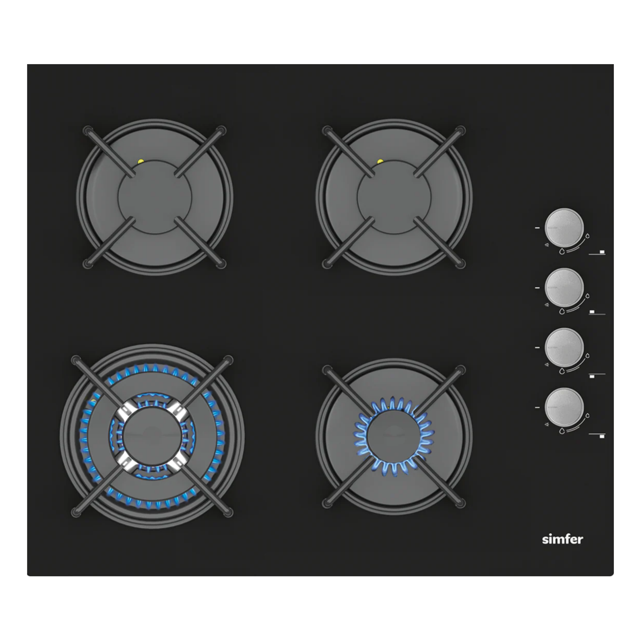 Simfer 3 Gözü Gazlı Wok Cam Ankastre Ocak Siyah