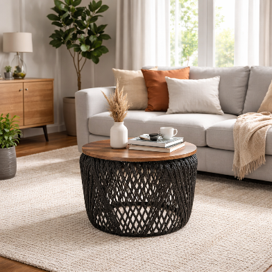 Siyah Halat Örme Sehpa 55x55x46 Cm