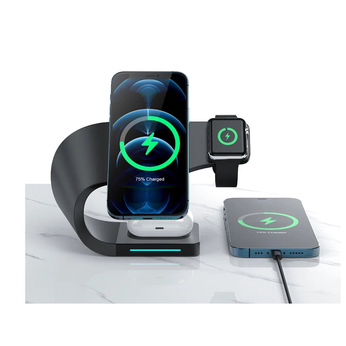 15W Kablosuz Şarj gücüne sahip olan 4in1 Wireless Şarj Standı, Türkiye'de en çok tercih edilen mobil aksesuar markası olan Sunix'in premium ürünleri arasındadır. Eşsiz şık tasarımı masanızda gelecekten gelmiş bir teknoloji ürünü olarak yer alırken işlevselliği ile vazgeçemeyeceğiniz bir iPhone çevre birimi olacak.