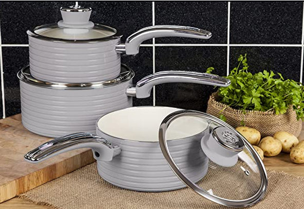 16, 18 ve 20 cm'lik tencerelerden oluşan bu set, makarna, patates ve sebzeleri kolayca haşlamak için mükemmeldir ve onu bir veya tüm aile için mükemmel hale getirir. Fildişi seramik yapışmaz iç kaplamaya sahip olan her tencere çok az yağ gerektirir veya hiç yağ gerektirmez, bu da daha sağlıklı bir pişirme ve daha kolay bir temizlik sağlar. 3 mm kalınlığında preslenmiş alüminyumdan üretilen her tencere, zaman testine dayanacak şekilde üretilirken, Bakelite yumuşak dokunuşlu serin kalan kulplar kullanım sırasında konfor ve kontrol sağlar. İndüksiyon dahil tüm ocak tipleri için uygun olan her tencere, optimum performansını korumak için yalnızca basit bir elle yıkama gerektirir. Şık Kuğu kabartmalı sap ve güzel kaburga tasarımlı gövdeye sahip cam kapaklarla tamamlanan bu Retro 3 Parçalı Tencere Seti, mutfağınıza hem pratik hem de şık bir katkı sağlar.