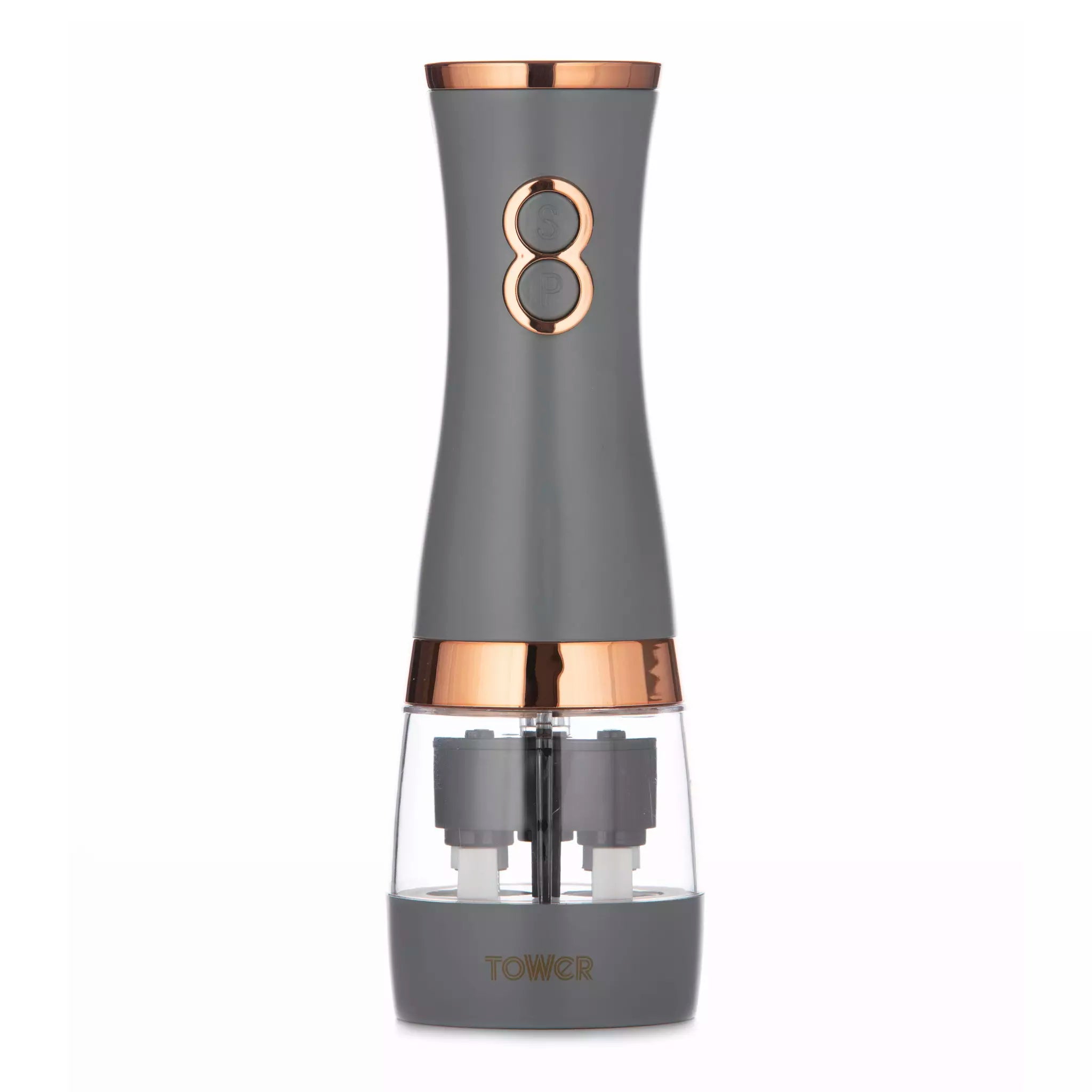 | Tuz veya karabiber öğütmek için iki ayrı basmalı düğme | Büyük kapasiteli, doldurulması kolay şeffaf akrilik hazneler |