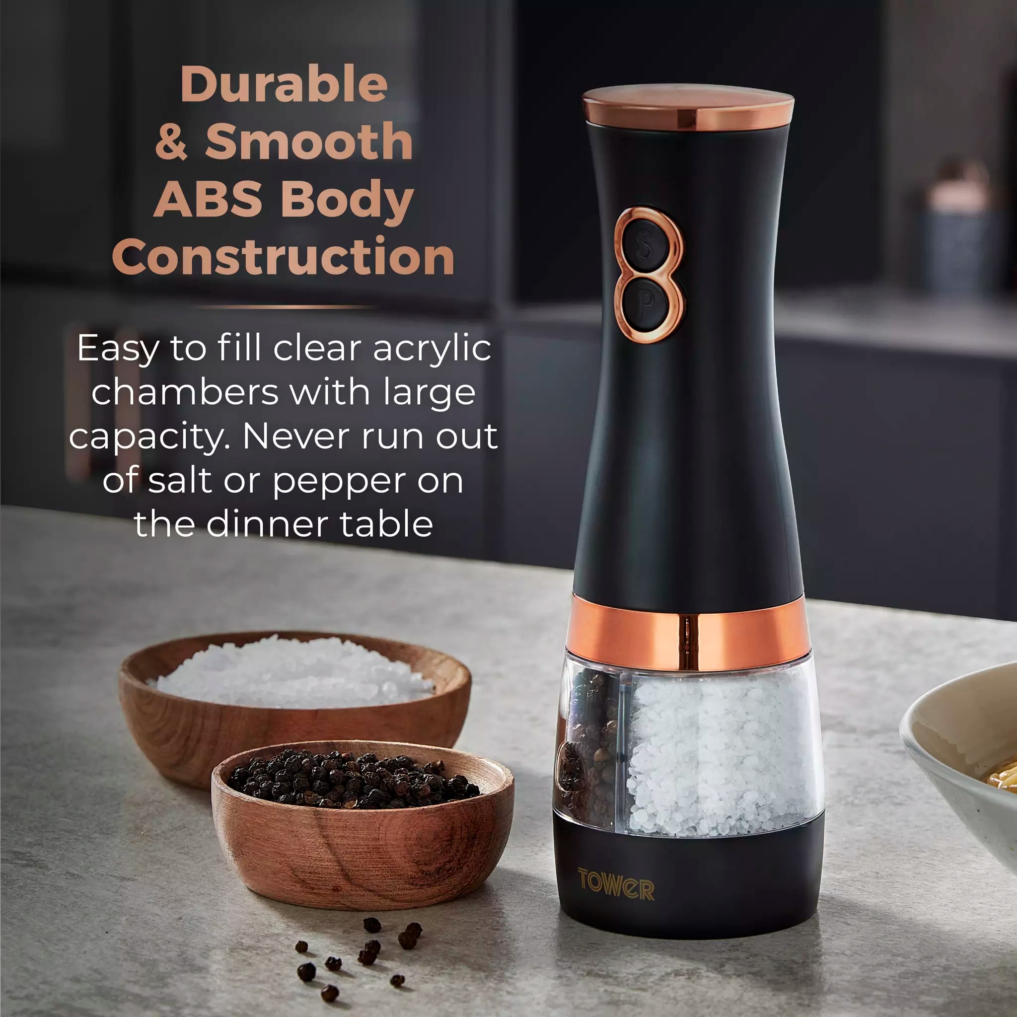 | Duo fonksiyonlu elektrikli tuz ve karabiber değirmeni | Dayanıklı ve pürüzsüz ABS gövde yapısı |