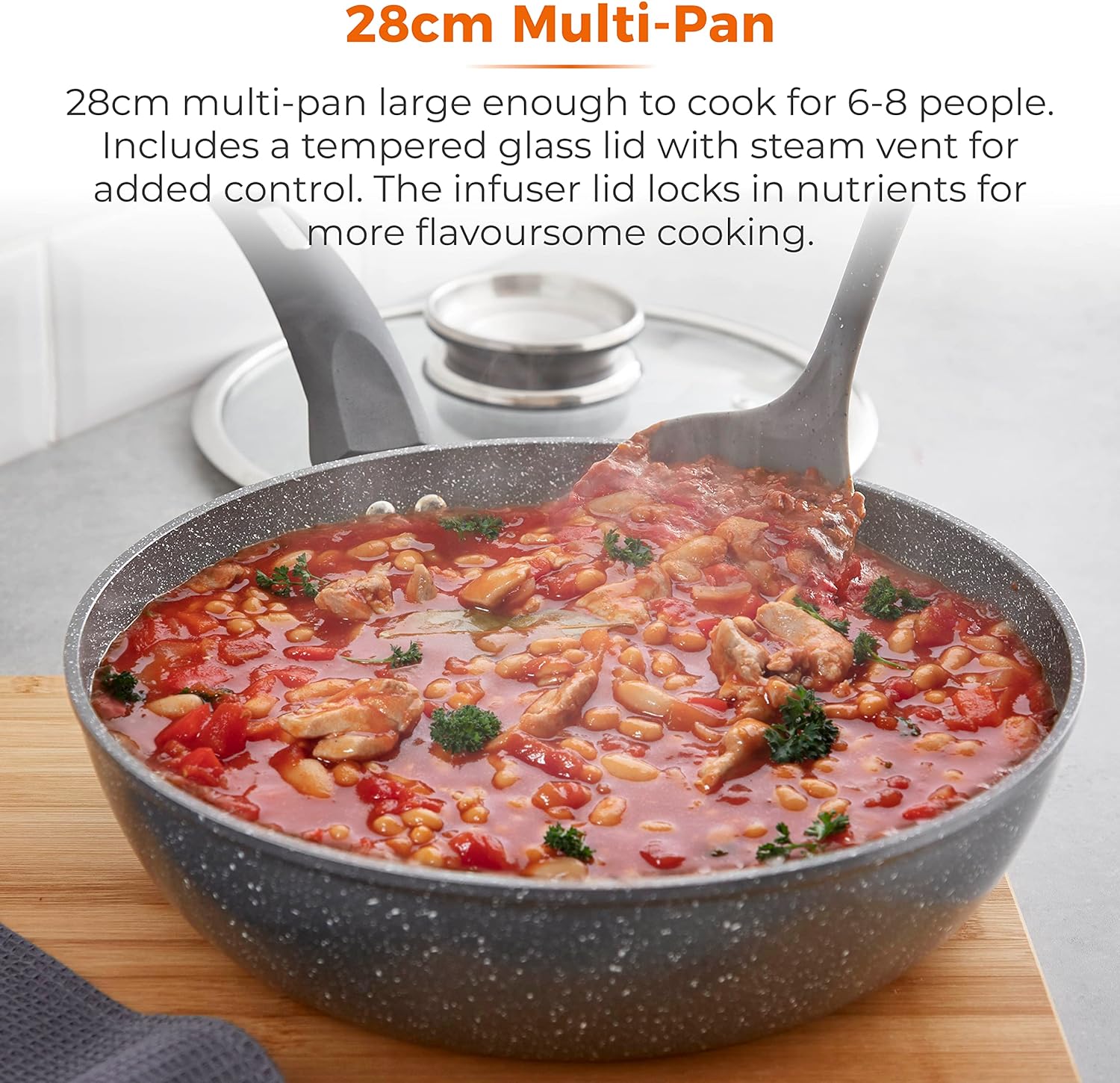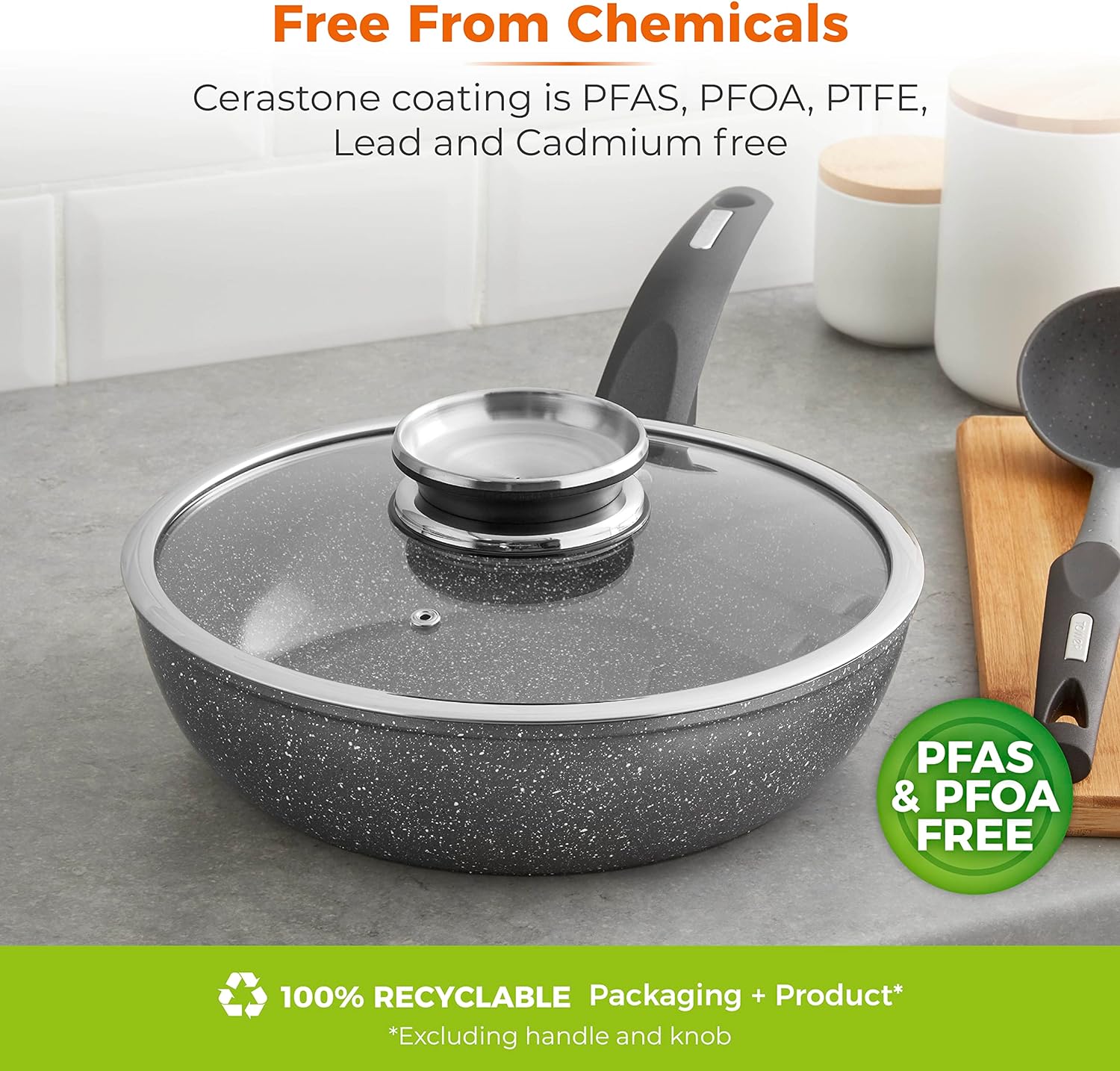CERASTONE KAPLAMA: Daha sağlıklı pişirme ve daha kolay temizlik için daha az yağ kullanan, üstün yapışmaz özelliklere sahiptir