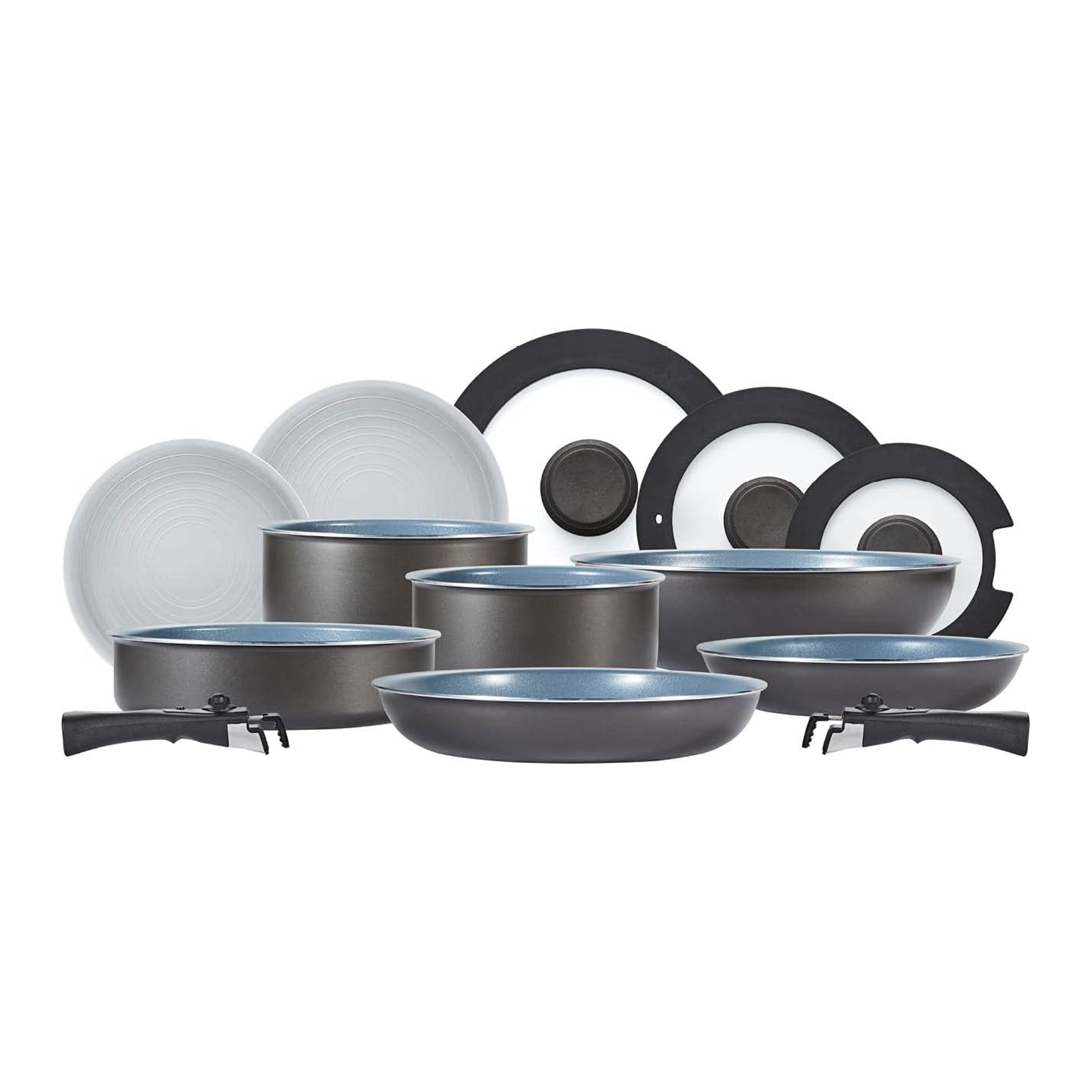 ÇOK YÖNLÜ TENCERE SETİ: 16cm ve 20cm tencereler, 22cm ve 28cm kızartma tavaları, 28cm wok, 24cm sote tavası, 3 cam kapak, 2 silikon kapak ve 2 çıkarılabilir sap içerir, çok çeşitli yemekleri pişirmek için mükemmeldir.