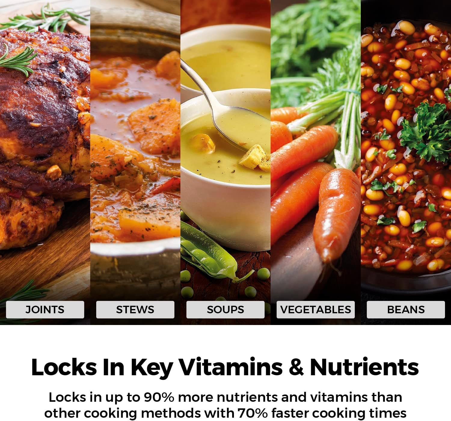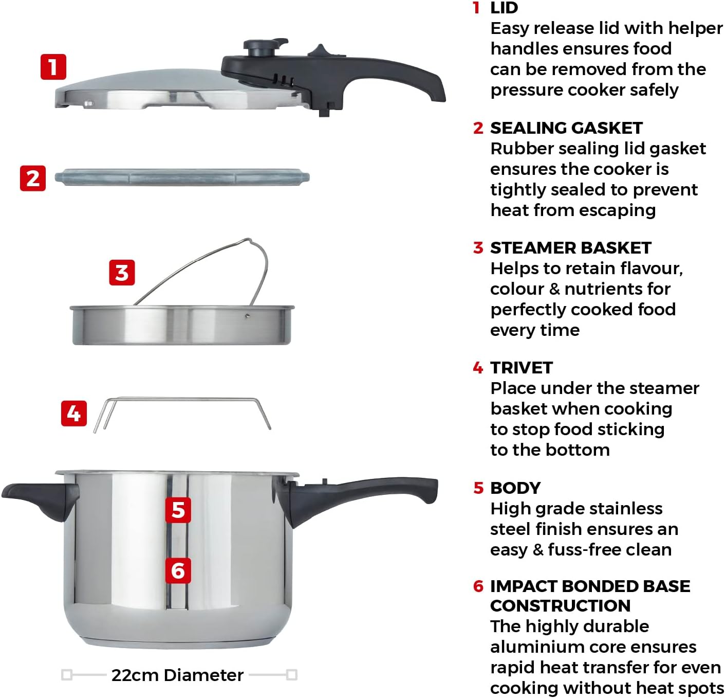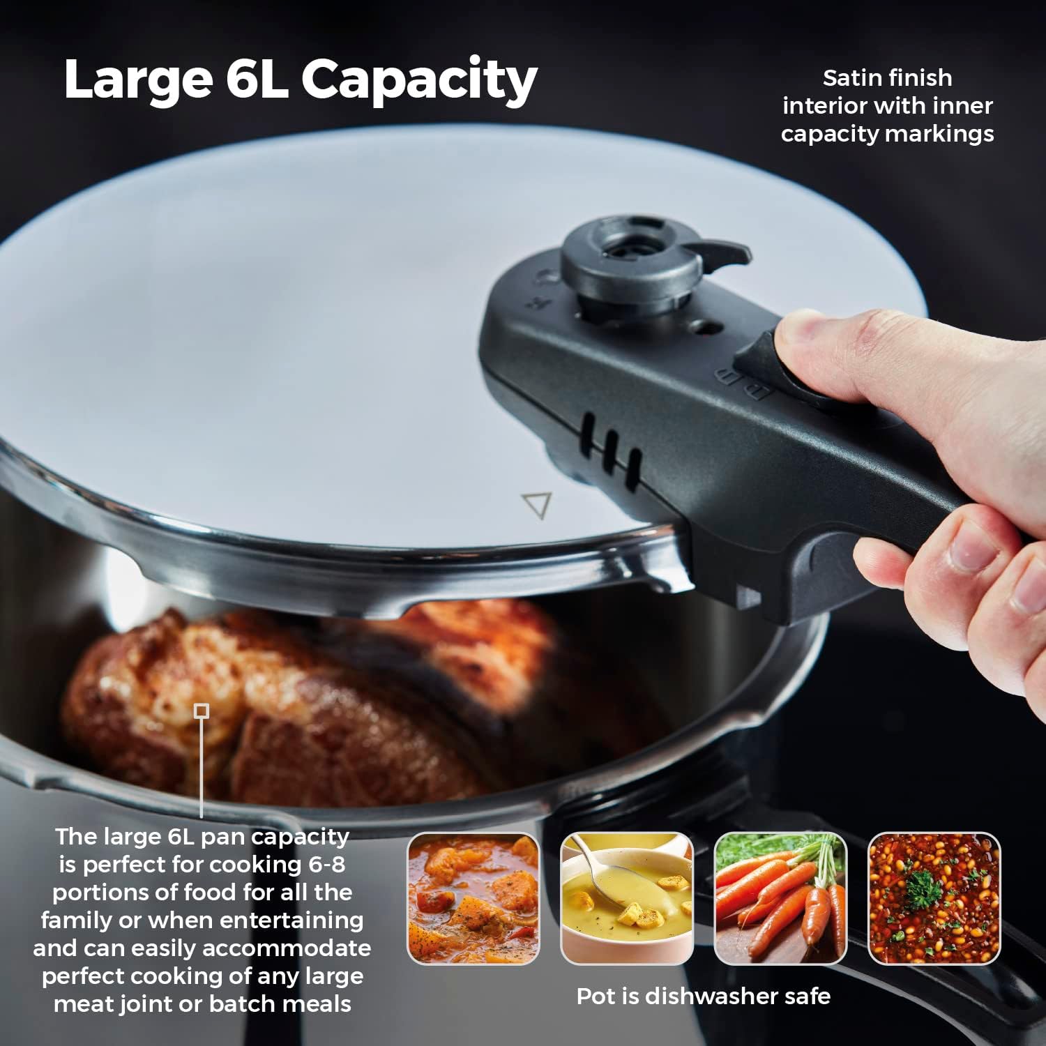 Tower'ın bu 6 litrelik çelik düdüklü tenceresiyle düdüklü tencere devrimine katılın. Vitaminleri ve besin maddelerini %95 oranında korurken, geleneksel pişirme yöntemlerine göre %90 daha az yakıt kullanır ve yiyecekleri daha hızlı pişirir. 6 litrelik kapasitesi, onu bir veya tüm aile için ideal kılarken, kolay temizlenebilen tencere, bulaşık yıkamak için daha az zaman harcanması anlamına gelir. Optimum rahatlık için paslanmaz çelik sepet ve standla tamamlanan bu düdüklü tencere, indüksiyon dahil tüm ocak türleri için uygundur.