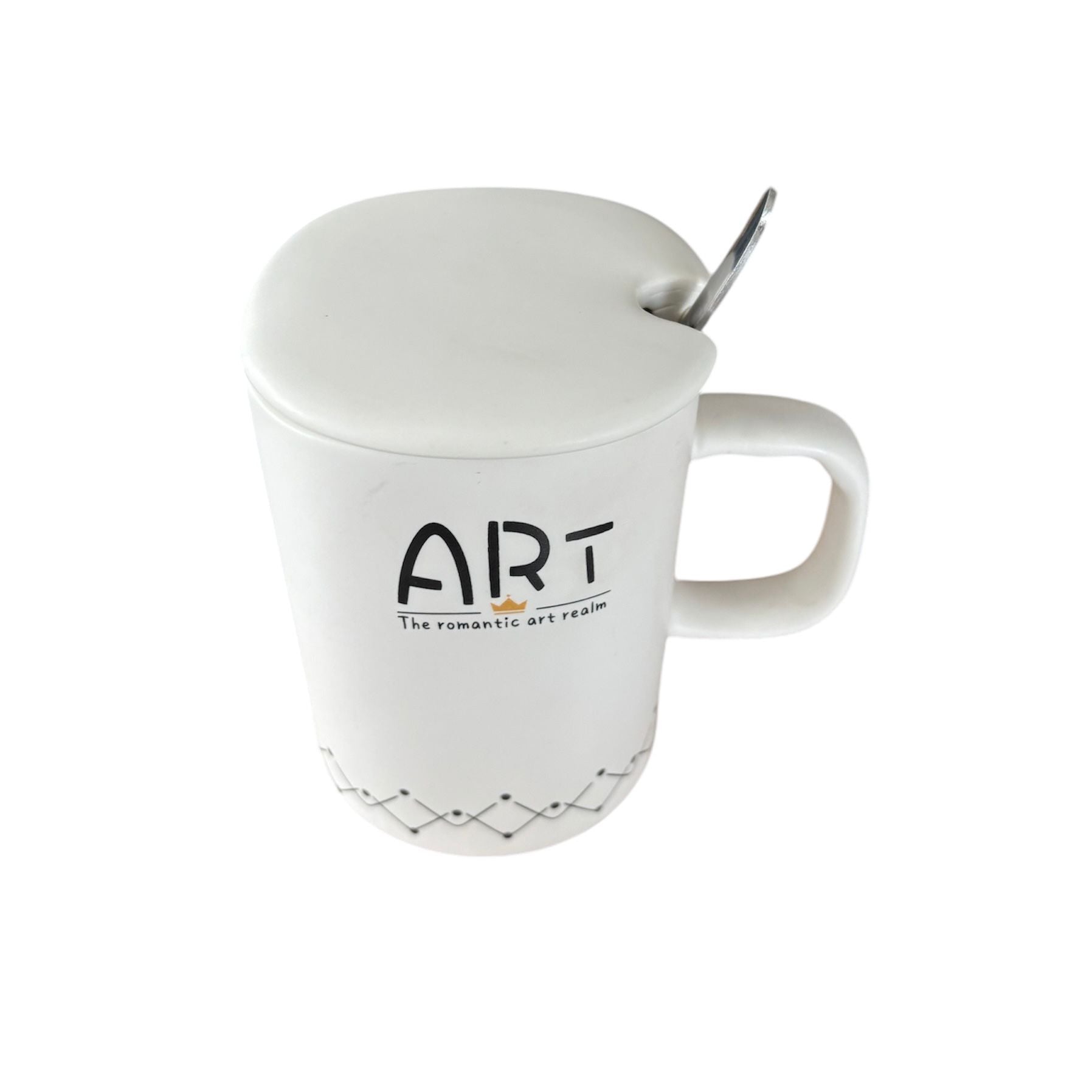 Ximivogue 500ml Nokta Desenli Çizgili Kapaklı Seramik Bardak