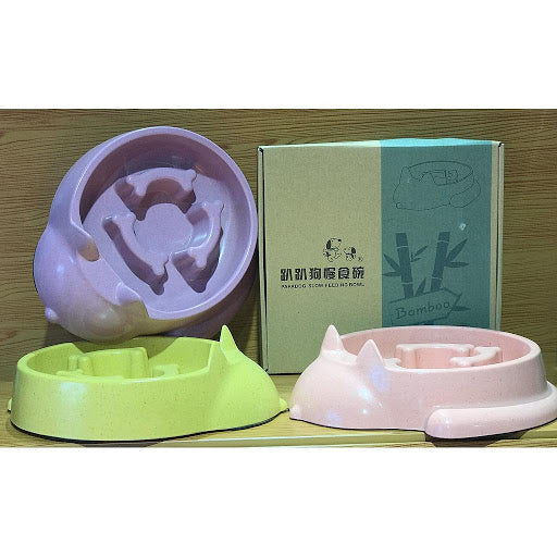 Yavaş Yeme Pet Mama Kabı Bambu Altı Kaymaz Mor