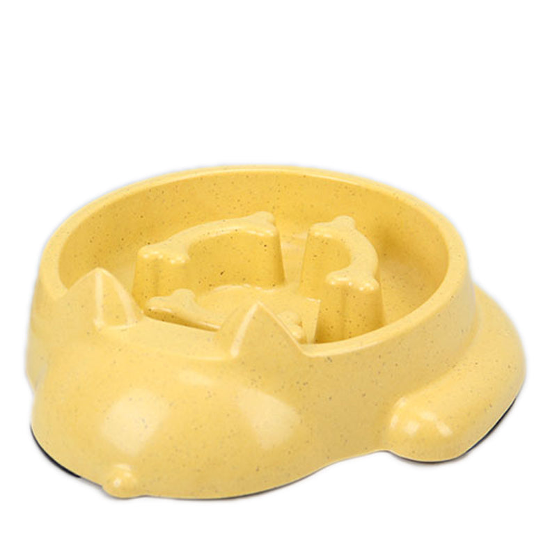 Yavaş Yeme Pet Mama Kabı Bambu Altı Kaymaz Sarı