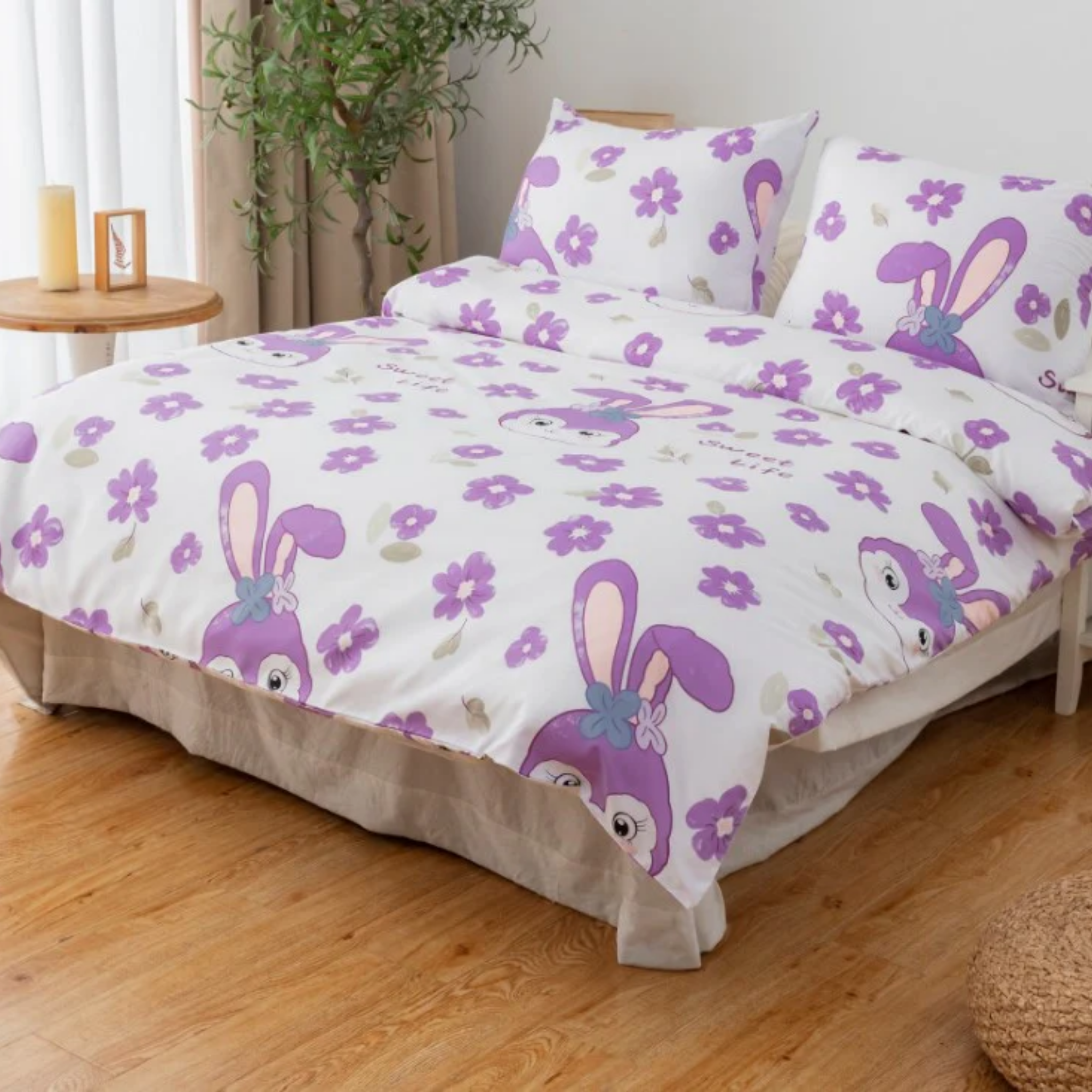 Mikro Saten Tavşan Desenli Lastikli 1.5 Kişilik Nevresim Takımı